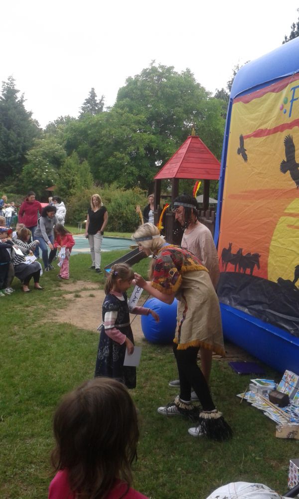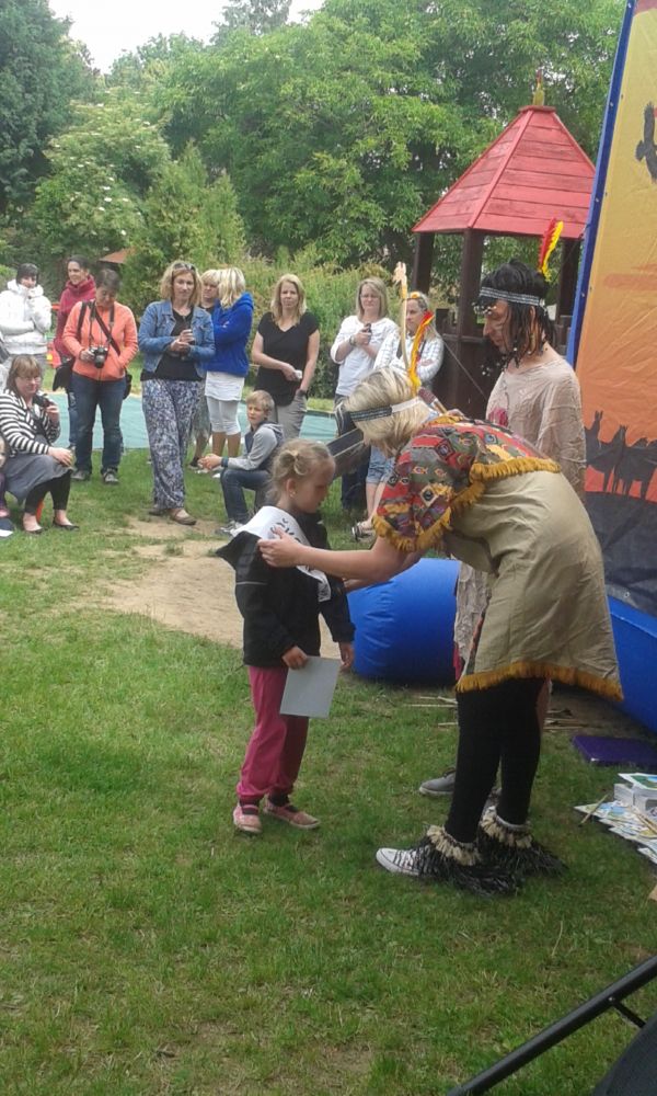 Z jiných školek jsme bohužel o pasování informace neměli. Pasování bylo doprovázeno zábavním programem s indiány. Náčelník Orlí Pírko s indiánkou Čili seznámili děti s indiánským životem a díky soutěžím, které skupina připravila, se děti vydali samy indiánskou cestou a životem indiánů. Budoucí prvňáčkové a ostatní plnili tematické úkoly a disciplíny, doplněné o tance. Po úspěšném splnění všech úkolů děti obdržely dárečky. Ke konci programu se dětičky seznámily s roztomilou medvědicí Fany, s kterou si společně zatancovaly a zasoutěžily. Závěr se nesl v duchu pasování předškoláků na školáky, školáčkové byli pasováni lukem Orlího Pírka a děti obdrželi od indiánky Čili šerpu. MŠ Srdíčko připravilo pro své svěřence velmi pěkné dopoledne.